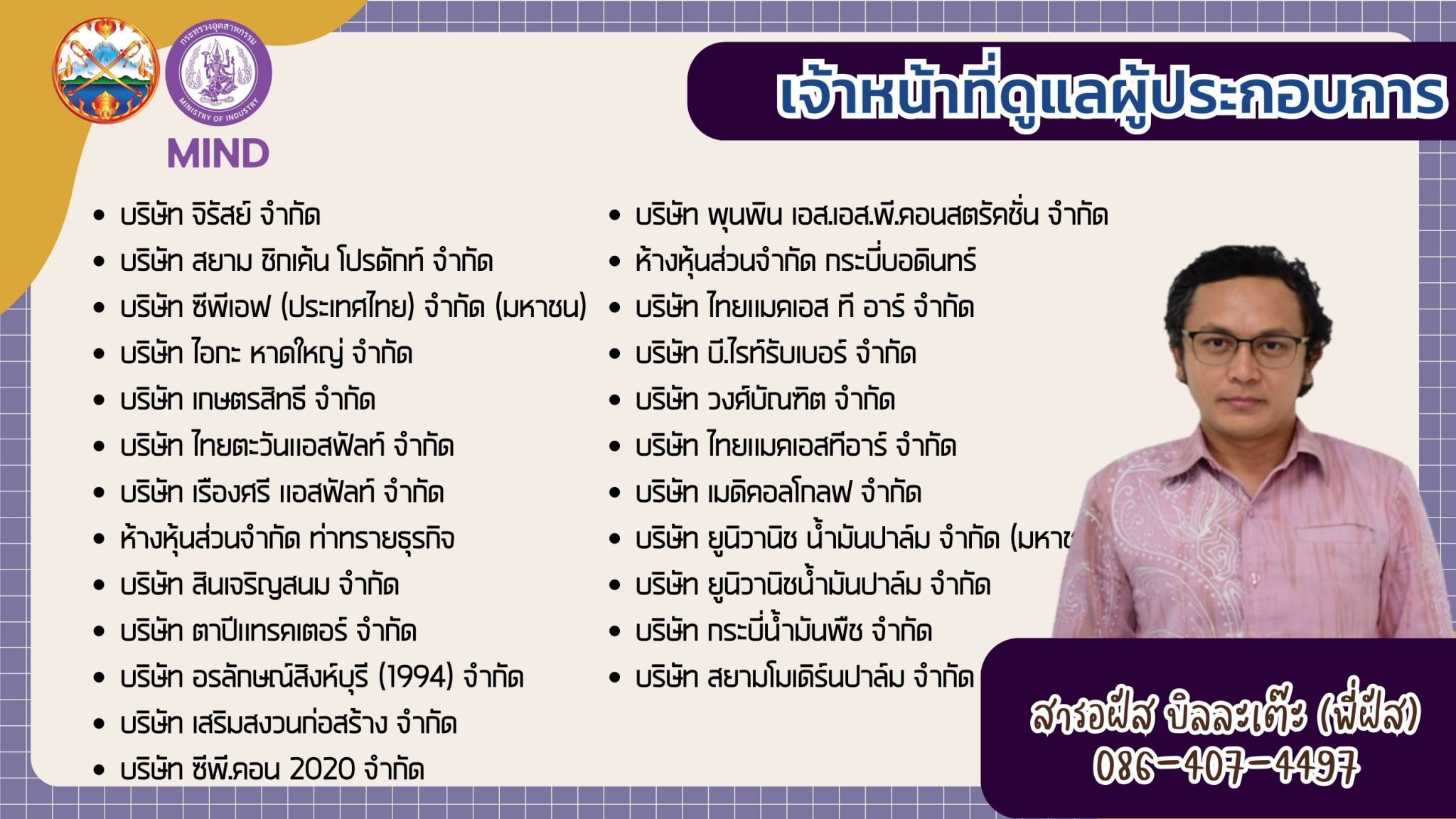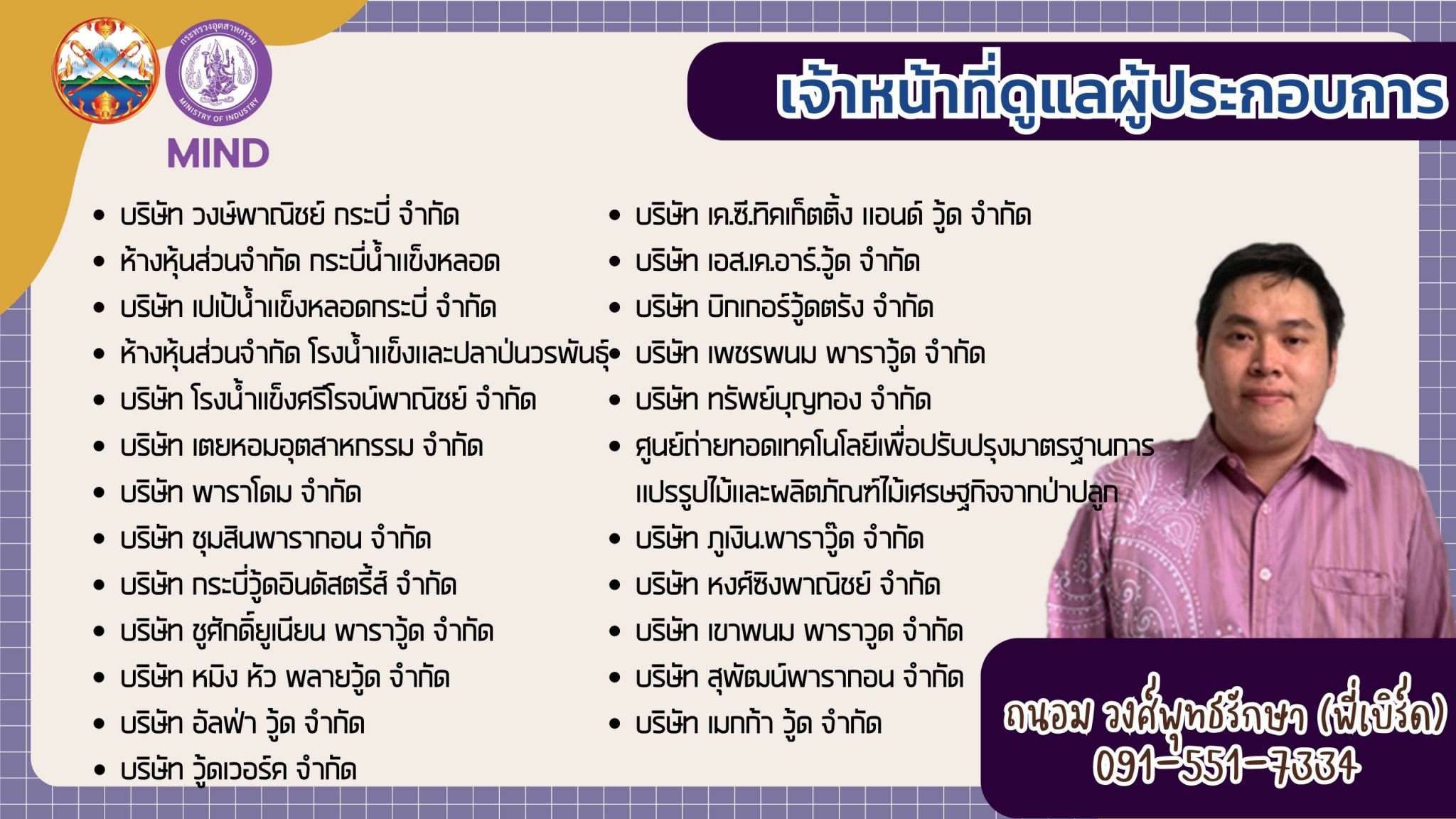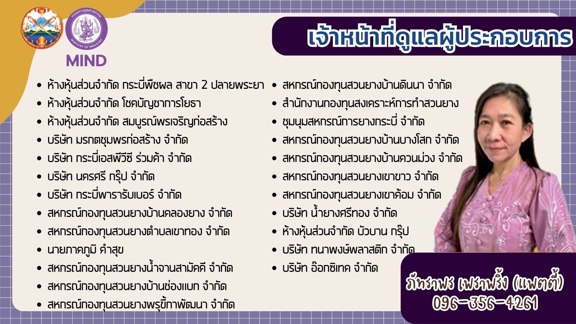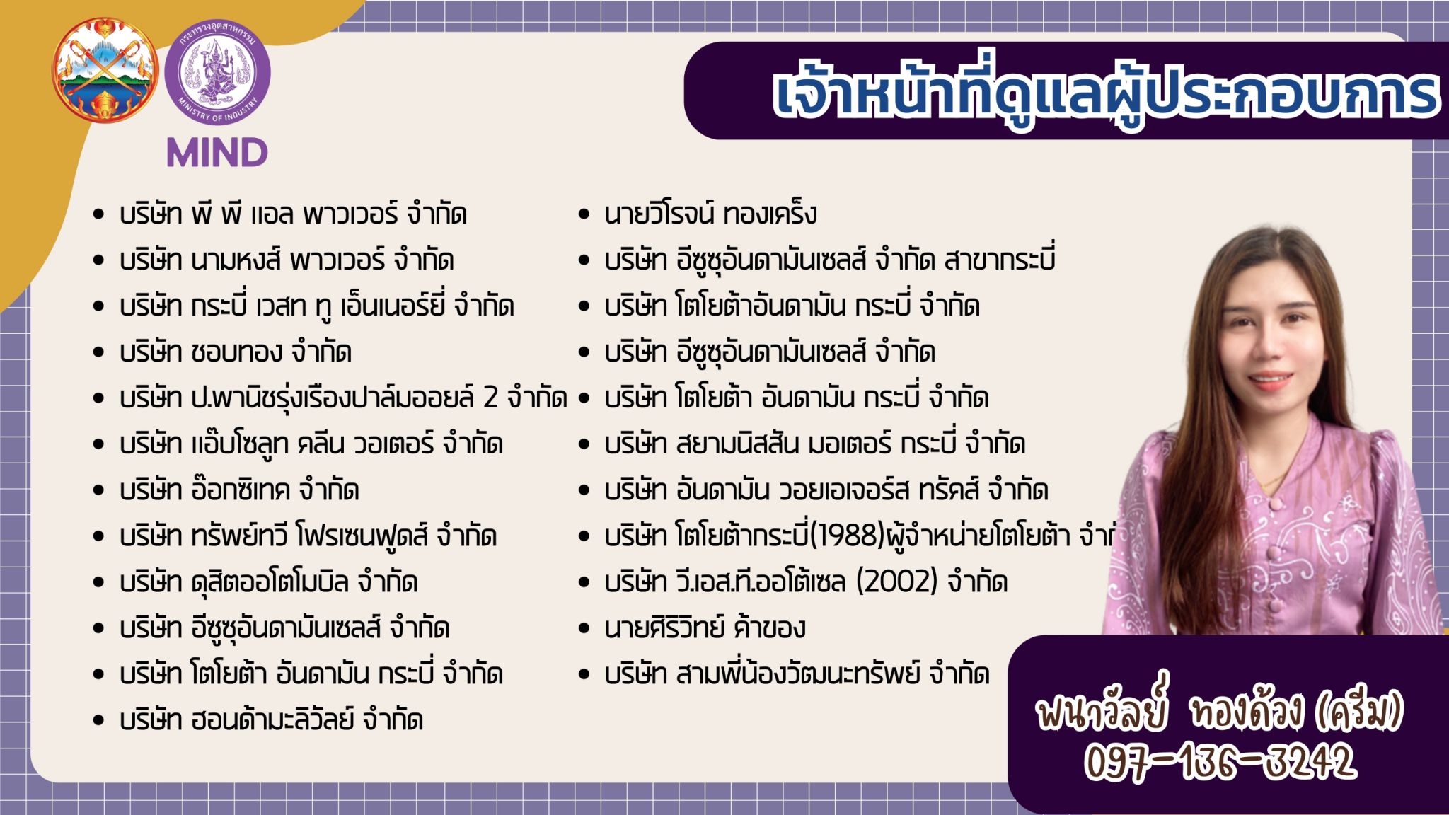 แจ้งรายชื่อ จนท.สอจ.กระบี่ ประสานงานผู้ประกอบการโรงงานอุตสาหกรรม จ.กระบี่