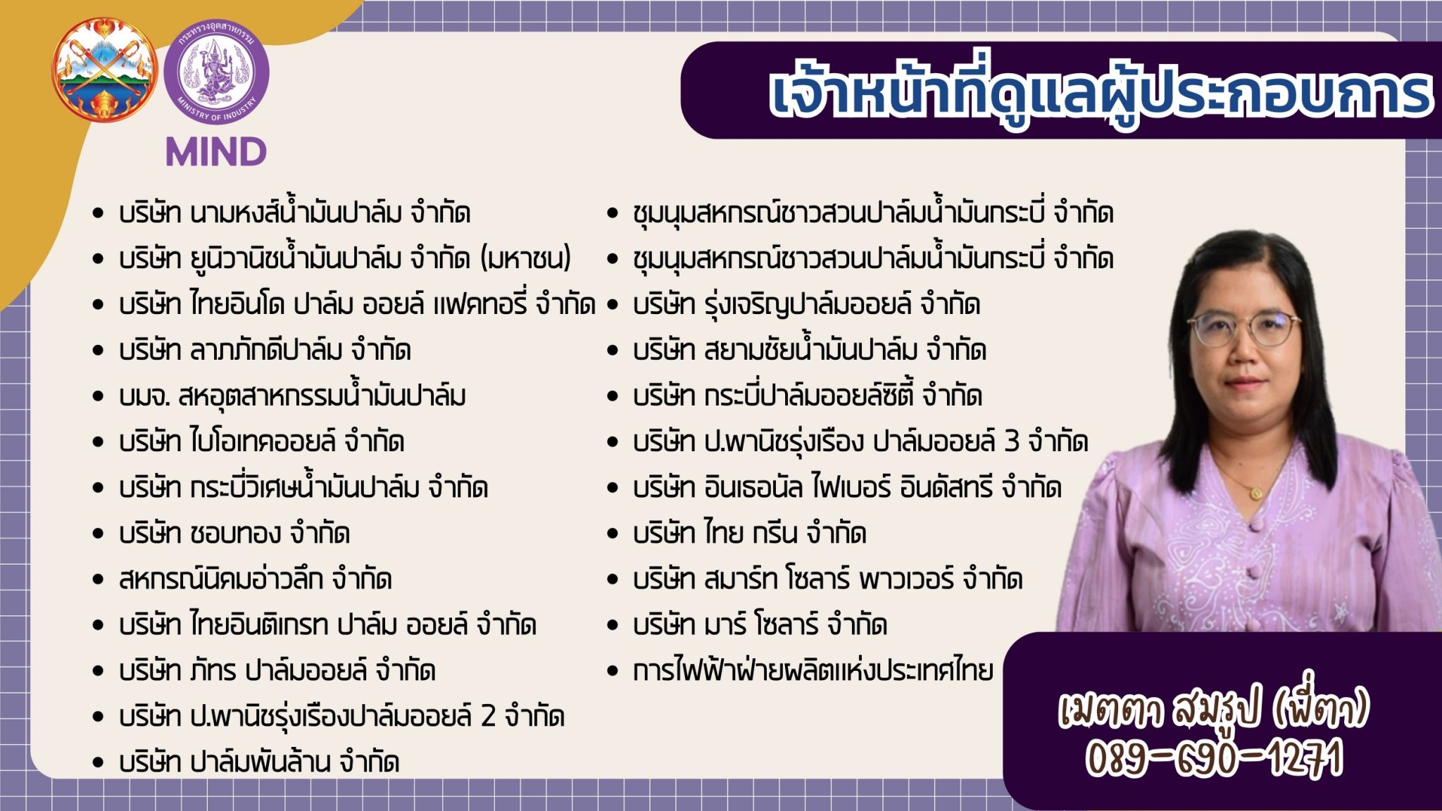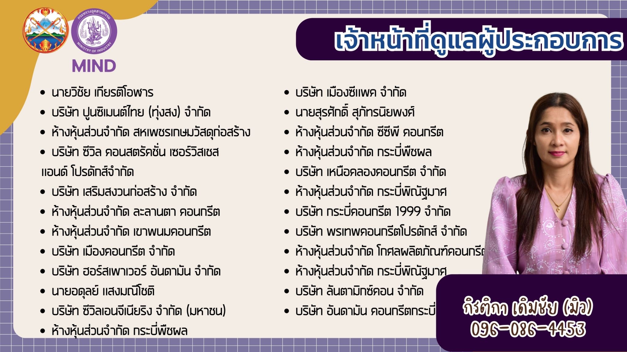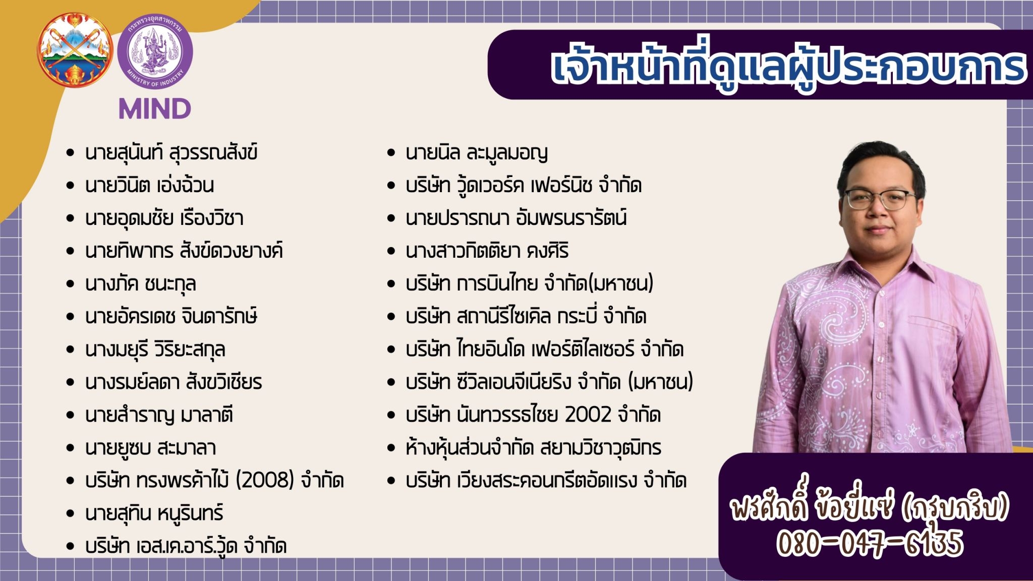 แจ้งรายชื่อ จนท.สอจ.กระบี่ ประสานงานผู้ประกอบการโรงงานอุตสาหกรรม จ.กระบี่