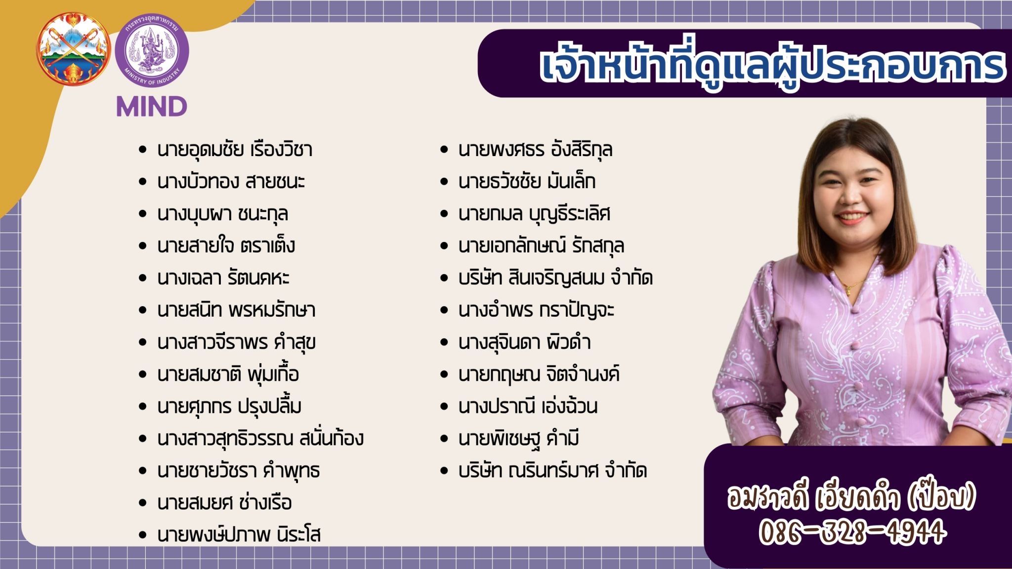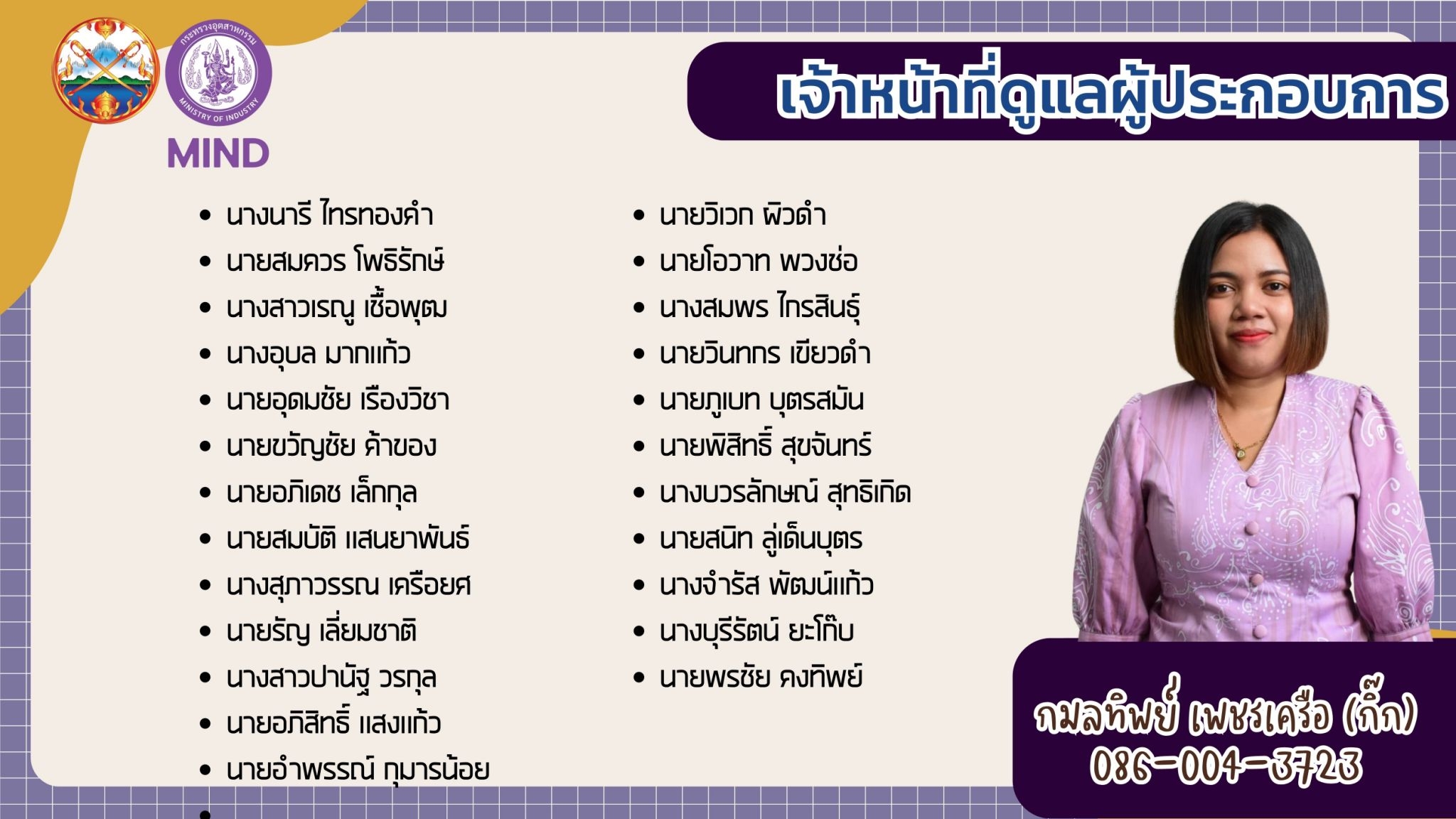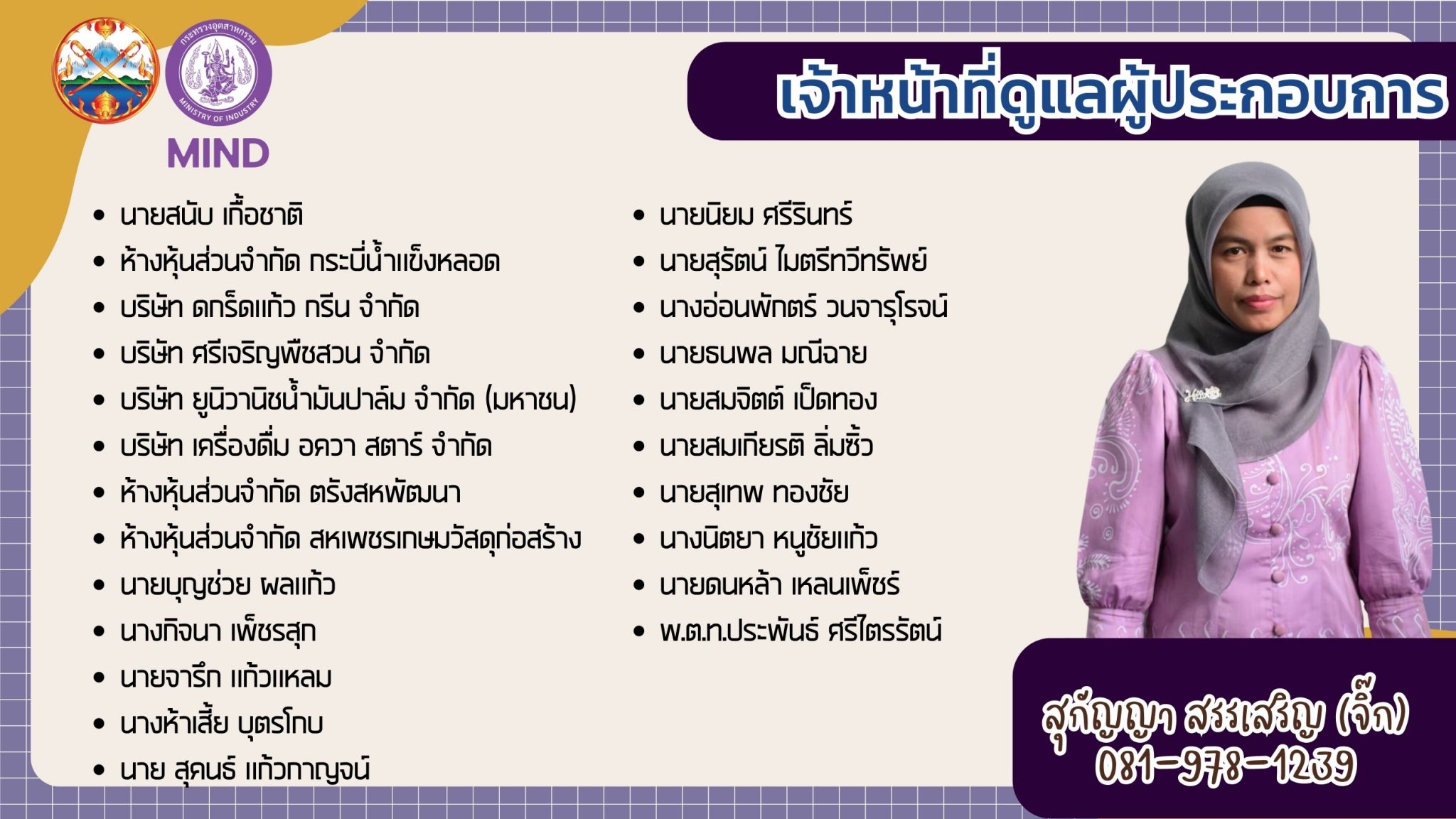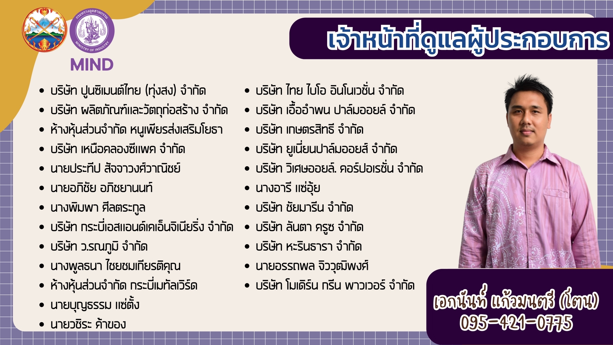 แจ้งรายชื่อ จนท.สอจ.กระบี่ ประสานงานผู้ประกอบการโรงงานอุตสาหกรรม จ.กระบี่
